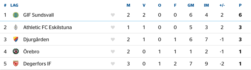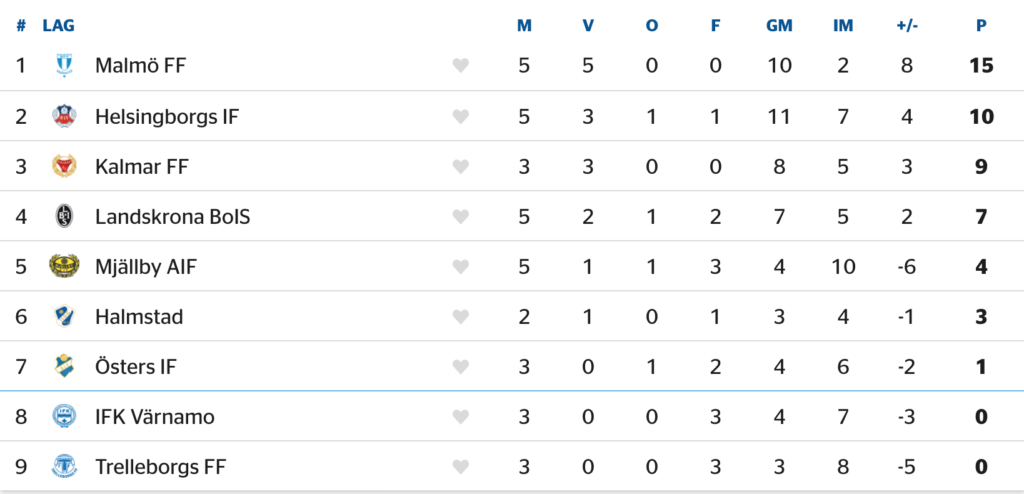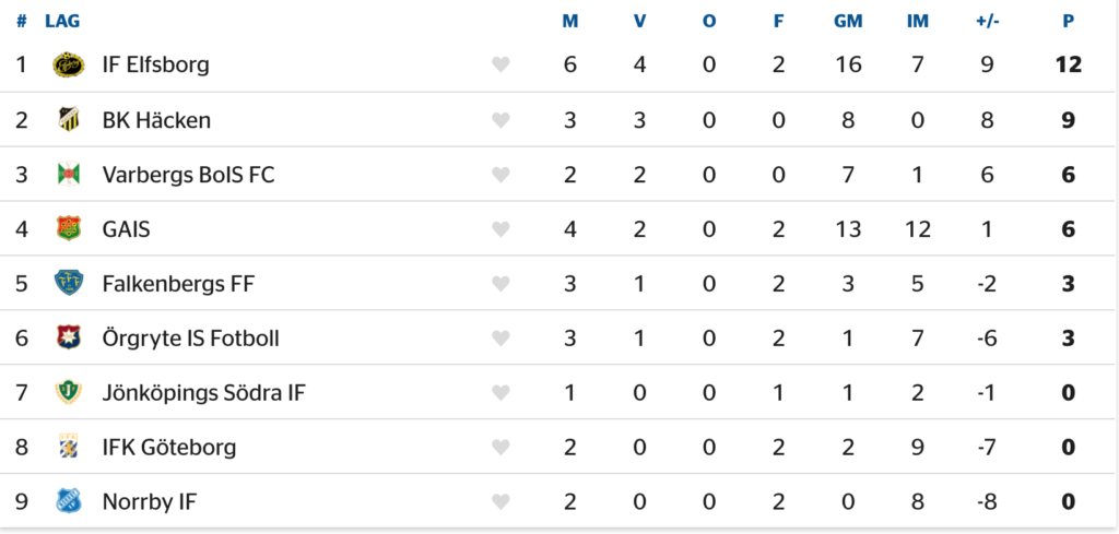 Elfsborg toppar tabellen i den södra serien, men har samtidigt spelat fler än dubbelt så många matcher som majoriteten av de andra lagen. Häcken och Varberg är de klubbar som gått segrande ur alla sina bataljer hittills, och i den sistnämnda klubbens fall är kanske skytteligatvåan Ryan Moon (tre mål) en anledning till det. Etta i samma statistik är Elfsborgs Jack Cooper Love, med fyra fullträffar på fem matcher.