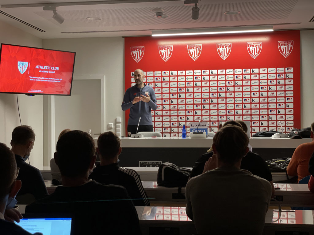 Den första dagen spenderades hos Athletic Bilbao. Klubbrepresentanterna fick en rundvandring på Athletic Clubs träningsanläggning och en snabb presentation om hur klubben jobbar med talangutveckling. Efter det fick deltagarna bevittna en träning med klubbens a-lag innan det var dags för några timmars erfarenhetsutbyte de svenska klubbarna emellan. På eftermiddagen fick deltagarna titta på ungdomsträningar.