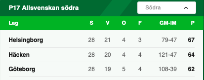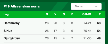 Det ordinarie seriespelet för P17 Allsvenskan och P19 Allsvenskan avgjordes i helgen. Kvar återstår nu bara de båda SM-finalerna mellan vinnarna av norra serien och vinnarna av södra serien. Matcherna spelas i helgen.