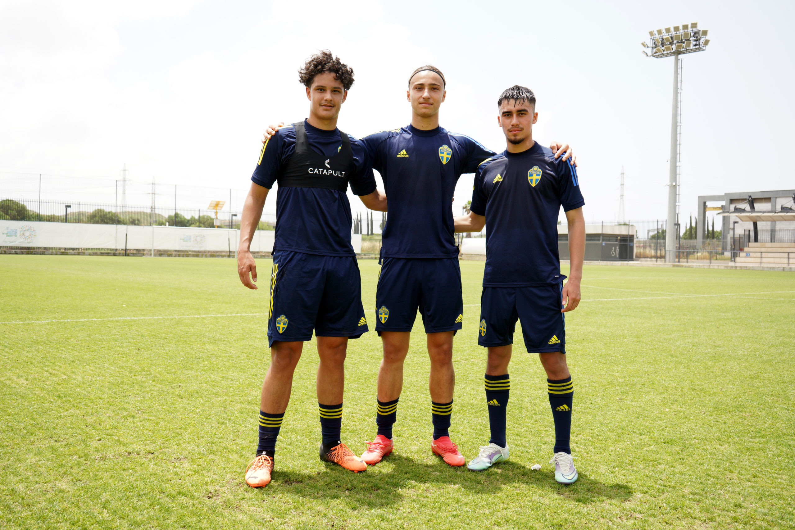Foto (där MFF-spelarna André Alvarez Perez, Elison Makolli och Alexander Hughes syns): Bildbyrån