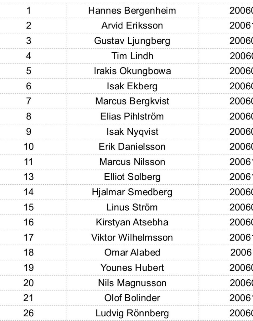 | 23 | Felix | Nilsson | 2006 |