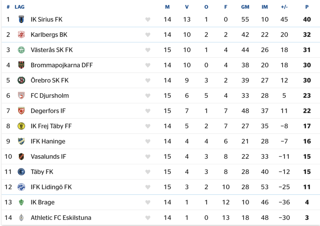 P19 Allsvenskan, tabell: