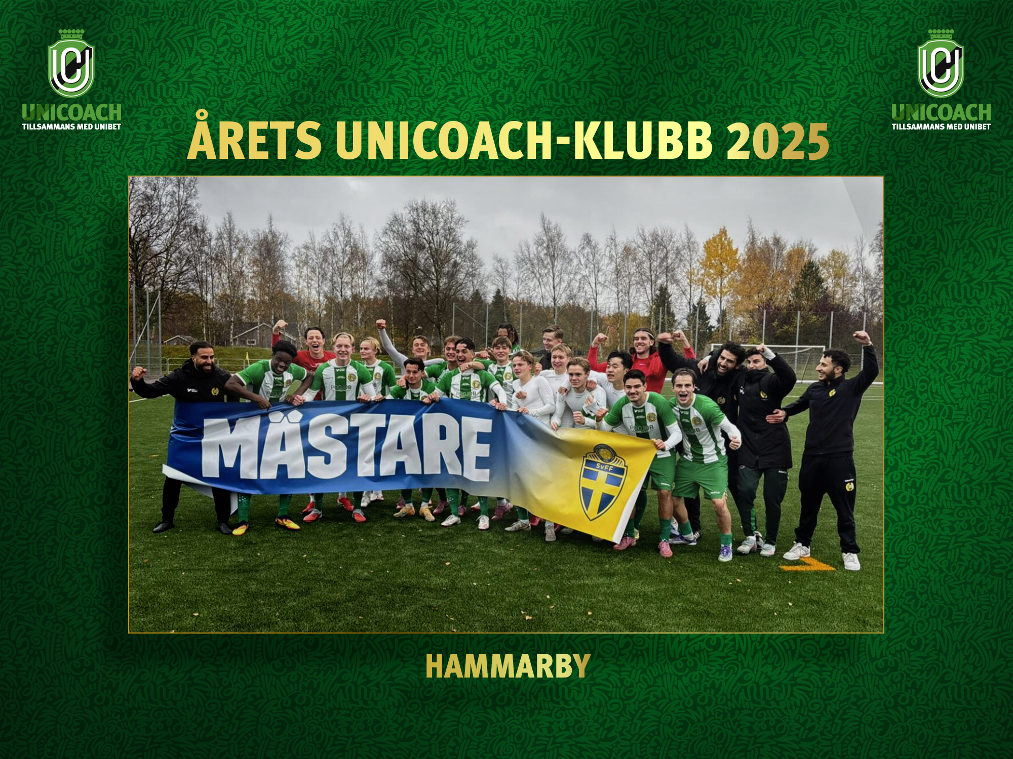 2025 blev ett framgångsrikt år för Hammarbys akademi, både i certifieringen och på planen. Det är också det som ligger till grund för utmärkelsen Årets Unicoach-klubb, som nu tilldelas de grönvita.