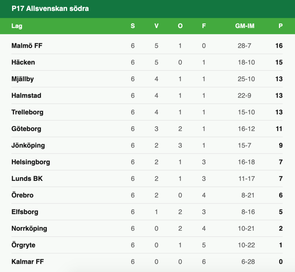De nationella P17-serierna, Allsvenskan Södra och Norra, har kommit ungefär halvvägs. Och det är tajt i toppen av båda tabellerna.