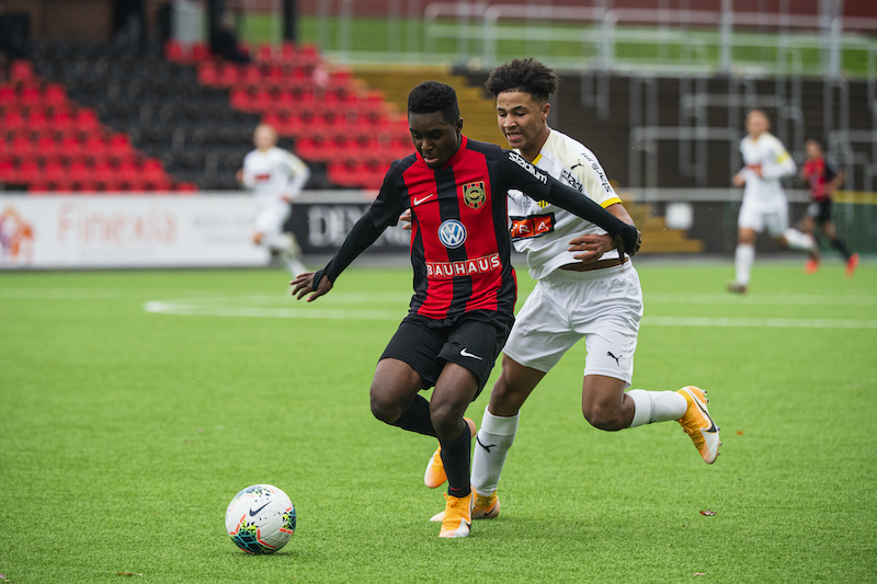 Foto: Jonathan Näckstrand / BILDBYRÅN / COP 94 / JN0004201024 Häckens Sebastian Tipura under fotbollsmatchen i U16 SM-finalen mellan Brommapojkarna och Häcken den 24 oktober 2020 i Stockholm.