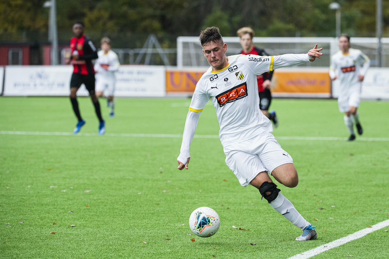 Foto: Jonathan Näckstrand / BILDBYRÅN / COP 94 / JN0004201024 Brommapojkarnas Leonard Kleist under fotbollsmatchen i U16 SM-finalen mellan Brommapojkarna och Häcken den 24 oktober 2020 i Stockholm.