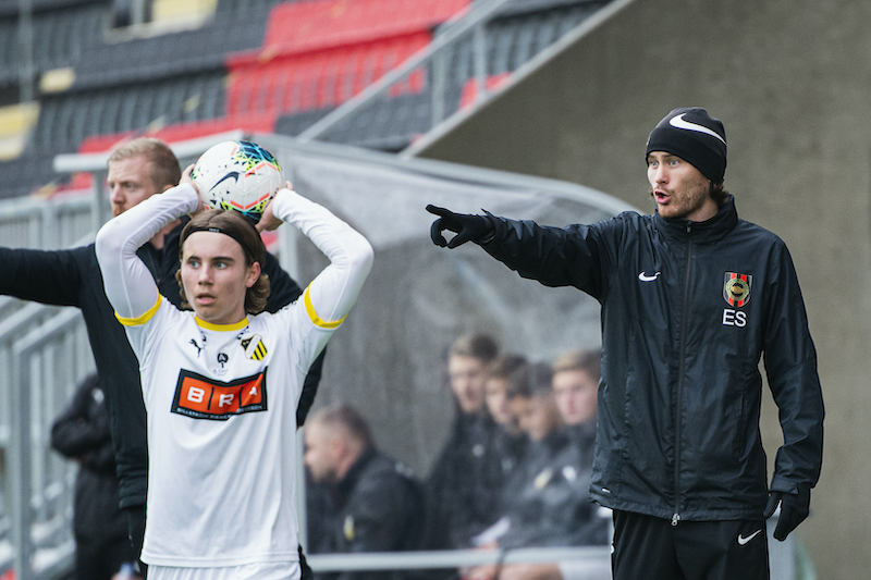 Foto: Jonathan Näckstrand / BILDBYRÅN / COP 94 / JN0004201024 Brommapojkarnas tränare Emil Spångberg under fotbollsmatchen i U16 SM-finalen mellan Brommapojkarna och Häcken den 24 oktober 2020 i Stockholm.