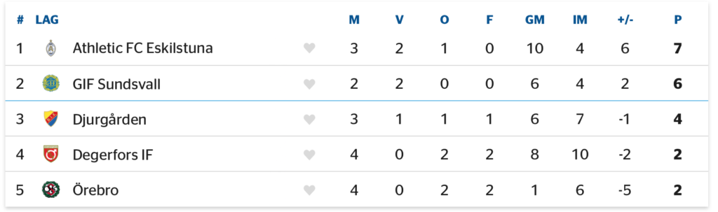 I den södra serien har Malmö FF sju raka segrar och toppar tabellen storstilat. I lagets senaste seger (3-1 mot IFK Värnamo) stod David Edvardsen för ett hat-trick. Skånekonkurrenten Helsingborg är närmast jagande och de rödblåa enda förlust kom i premiären mot just MFF. Noel Mbo och Alhaji Gero har varit målgladast för HIF än så länge. Efter fyra raka segrar åkte Kalmar FF på sin första förlust i den senaste omgången när Trelleborgs FF tog sin första seger för säsongen. Laget har dock, med sina två matcher mindre spelade, chansen att ta sig förbi HIF och närma sig MFF rejält.