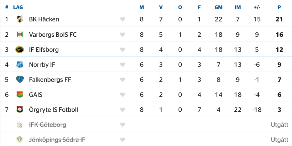 IFK Göteborg och Jönköpings Södra har dragit sig ur den mellersta serien, där tre av sju lag nu alltså avancerar vidare till kvartsfinal. BK Häcken har här tagit ett rejält grepp om förstaplatsen, och allra intressantast där bakom får man nog säga att kampen i Borås är: Elfsborg och Norrby gör nämligen upp om den viktiga tredjeplatsen!
