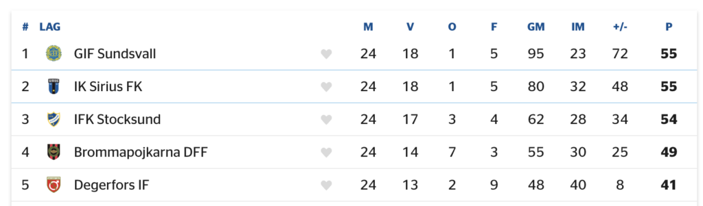 Två motsatta formkurvor gjorde dock att försprånget åts upp, och med två matcher kvar att spela toppar GIF Sundsvall tabellen i kraft av bättre målskillnad. Lägg därtill att IFK Stocksund, på tredjeplatsen, bara är en ynka poäng bakom.