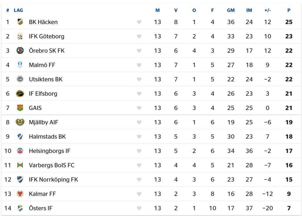 I den södra serien hamnade samtliga fyra lag från Göteborg – BK Häcken, IFK Göteborg, Utsiktens BK och GAIS – på den övre halvan och får därmed göra upp om topplaceringarna. De görs sällskap av Örebro SK, Malmö FF och IF Elfsborg.