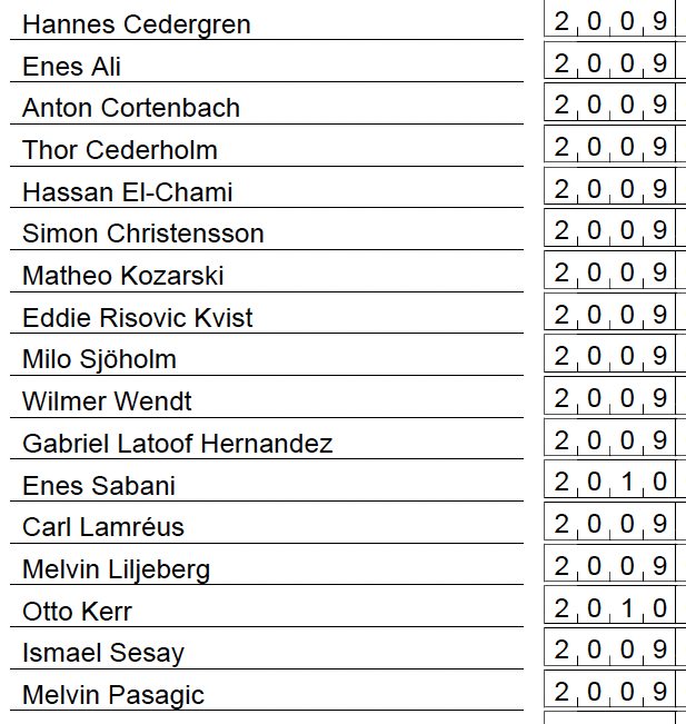 | 18 | Isaac | Rojas Sjöholm | 2009 |