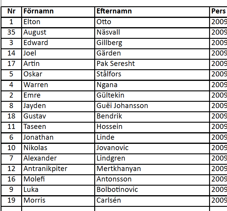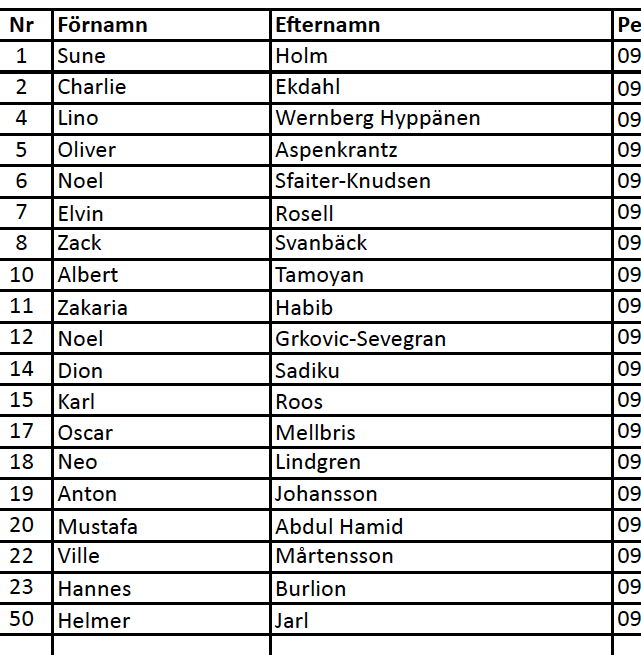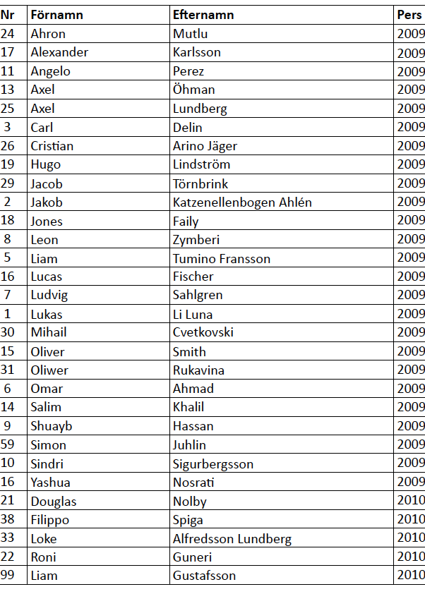 | Nr | Förnamn | Efternamn | Född. |